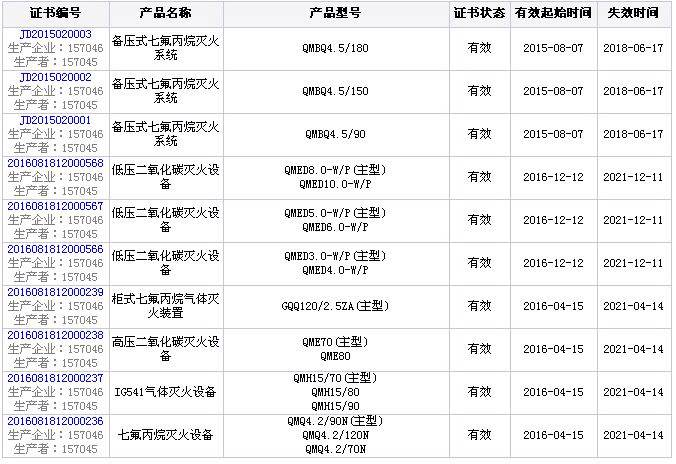 2016年12月13日,陜西中安消防集團山西名牌產(chǎn)品的低壓二氧化碳滅火設(shè)備取得3C證書,具體情況如下: